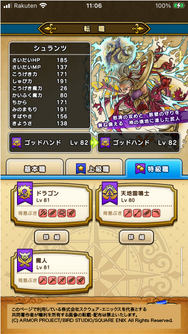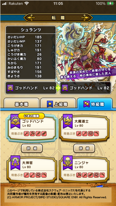 | 全職業の合計レベル | 6647レベル |