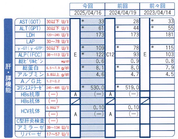 40代となった今は、20代の頃の200倍くらい野菜を摂っているにも関わらずE判定・・・これが”老い”か・・・