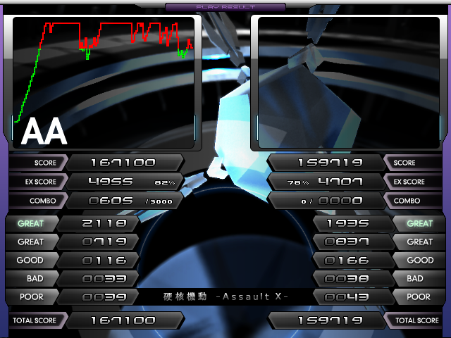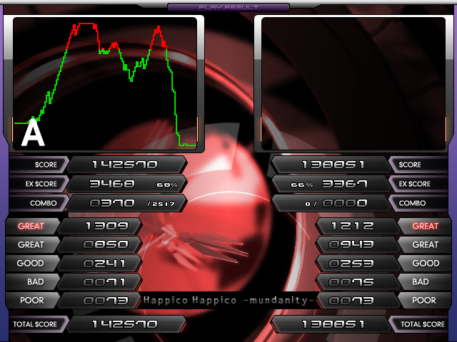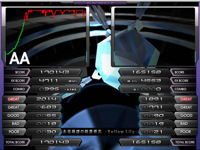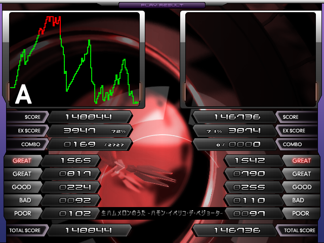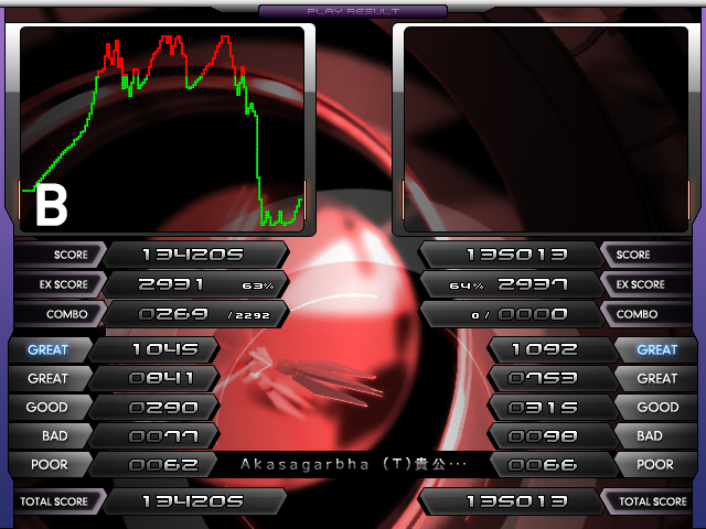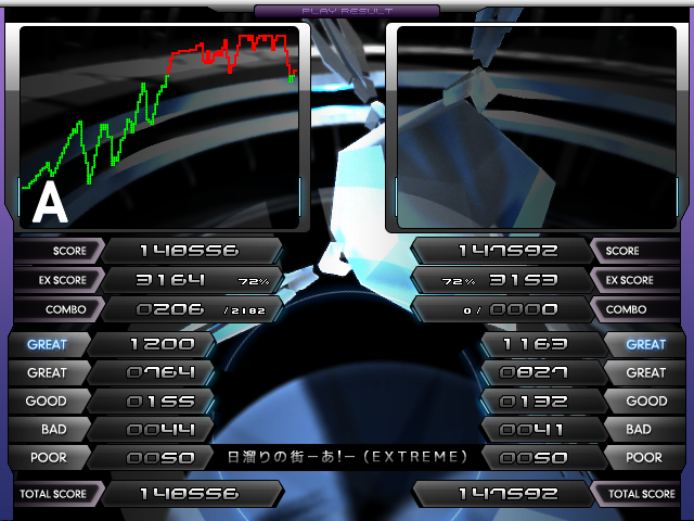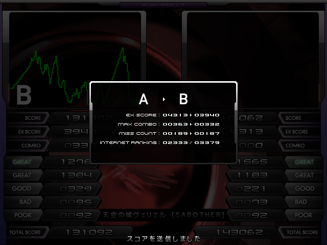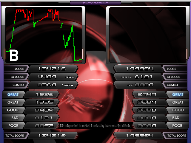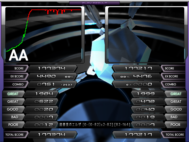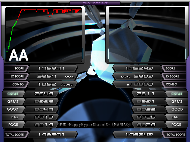 基本的に平日はデバフを食らっているので、インテンポ(FREQ±0)でプレーすると大抵は自己べからかけ離れたスコアが出て萎える。(酷い時は-1000点を叩き出すときもある)