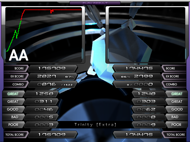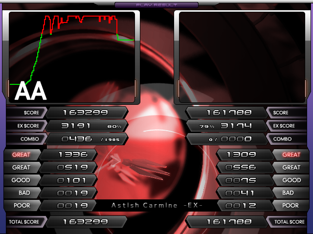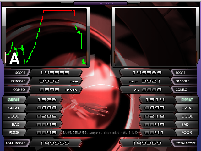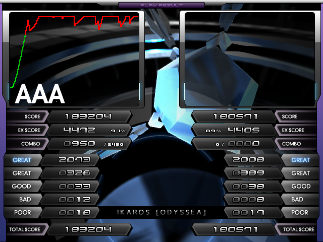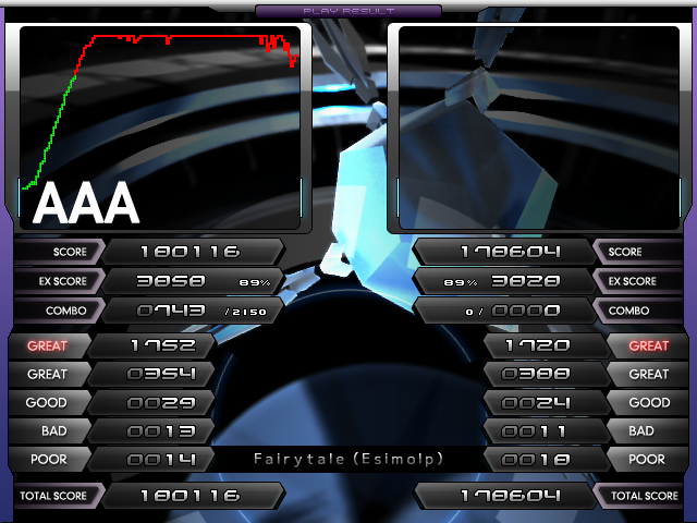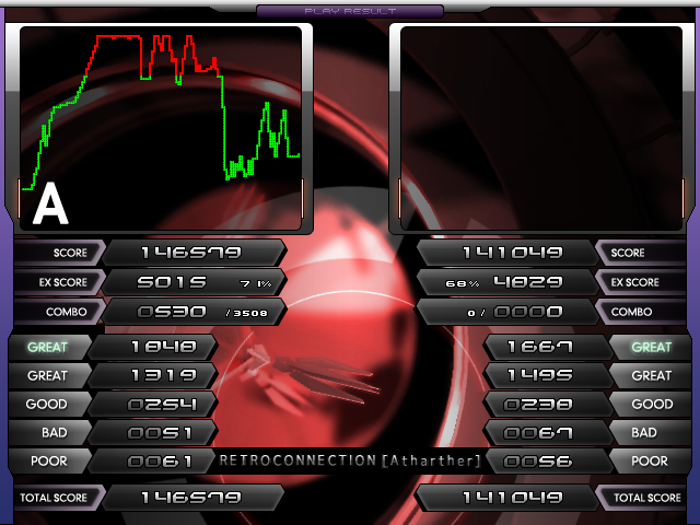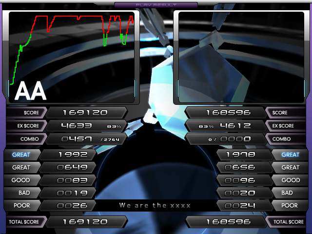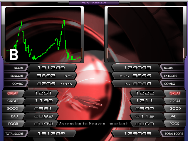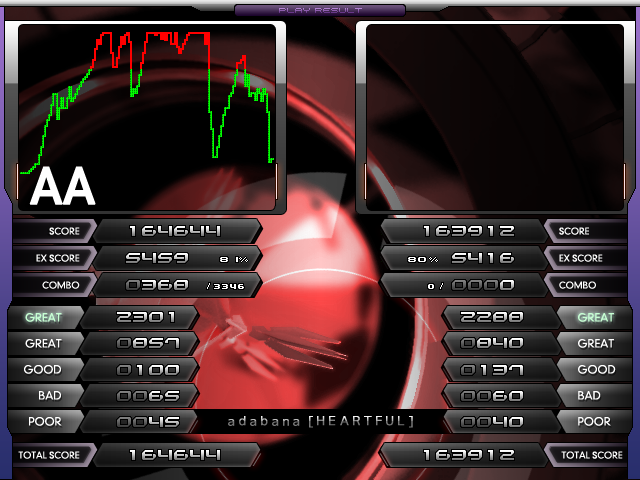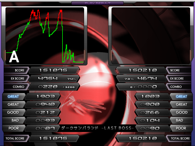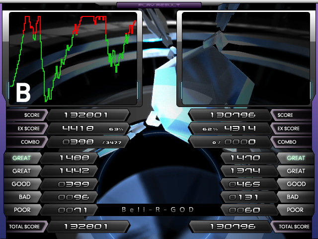 基本的に平日はデバフを食らっているので、インテンポ(FREQ±0)でプレーすると大抵は自己べからかけ離れたスコアが出て萎える。(酷い時は-1000点を叩き出すときもある)